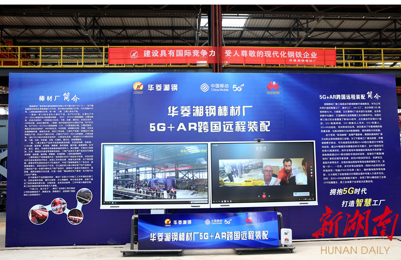 2020年疫情期间,湘钢携手湖南移动、华为、亮风台,在提质改造项目-精品中小棒特钢生产线关键的安装调试阶段,运用5G+AR技术,实现中国、德国、奥地利三地跨国远程装配。这也是我国钢铁业首次实现“5G+AR跨国远程装配”。